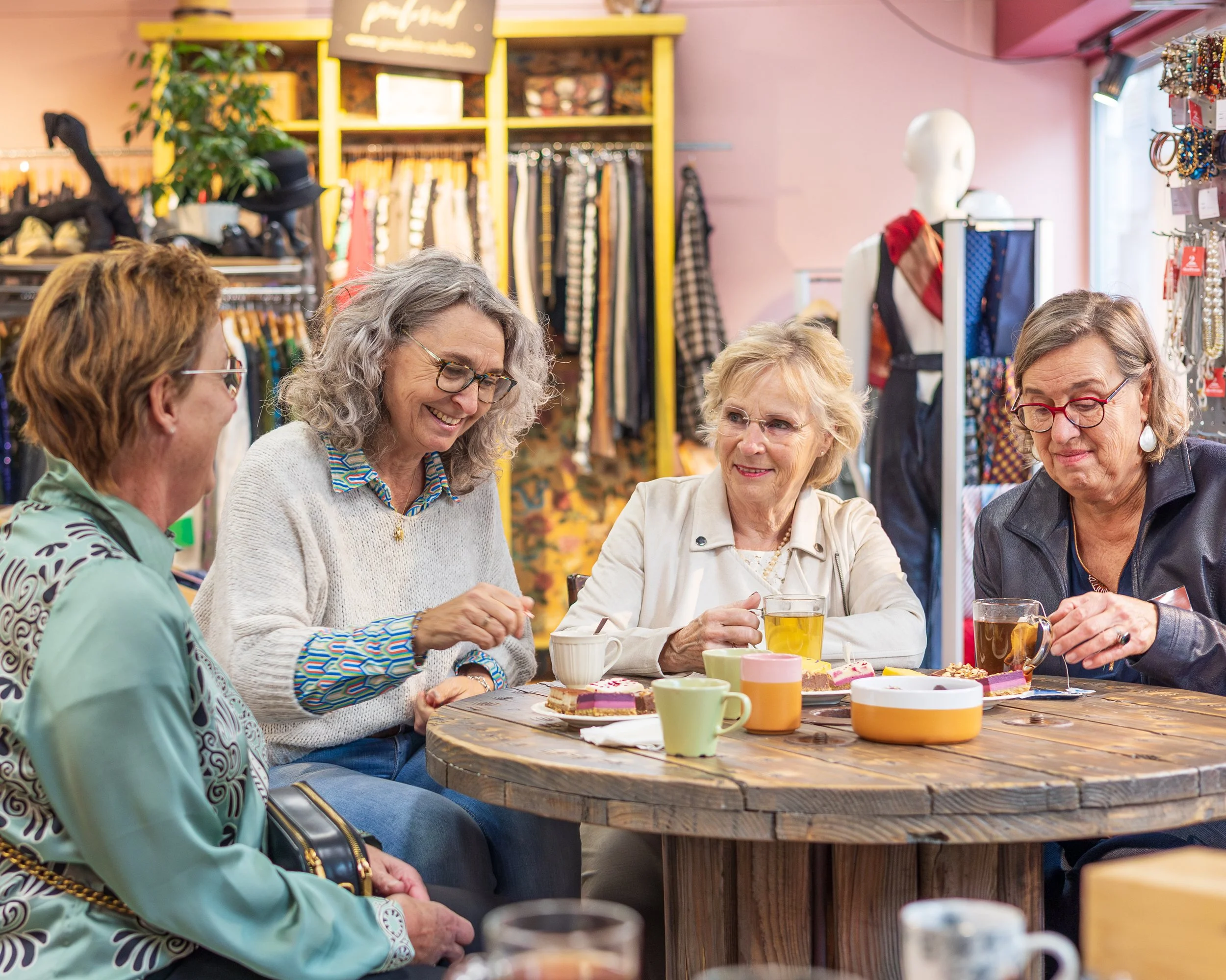 Hoe vaker je komt shoppen, hoe meer vrijwilligers je leert kennen want ze maken graag een praatje of adviseren je bij het kiezen van je kleding! Met zo’n gezellig team vrijwilligers wordt natuurlijk ook af en toe een teamuitje gepland, een perfect moment om een teamfoto te maken!